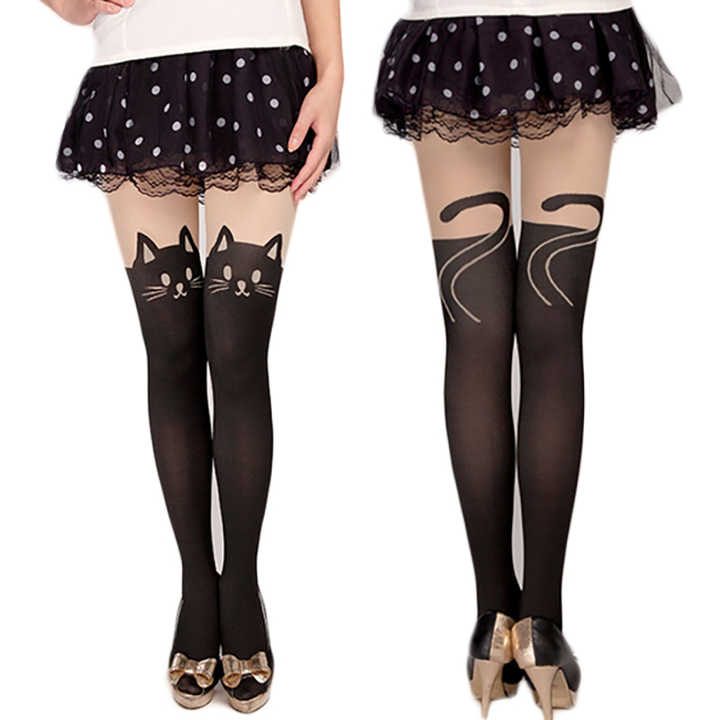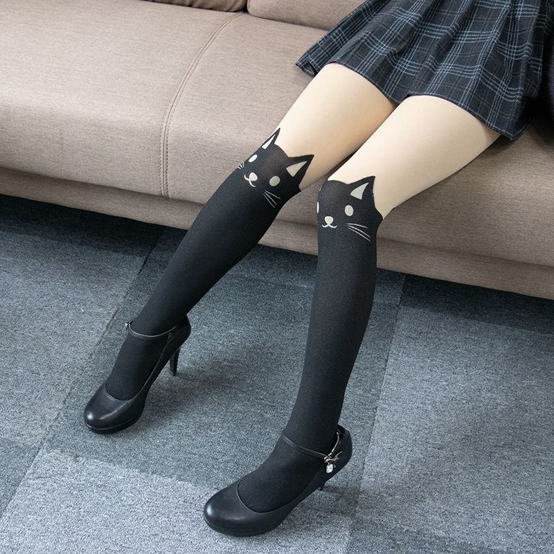 Pantimedias japonesas con patrón de gato de dibujos animados de alta calidad, pantimedias bonitas personalizadas para mujer, medias de moda para niñas