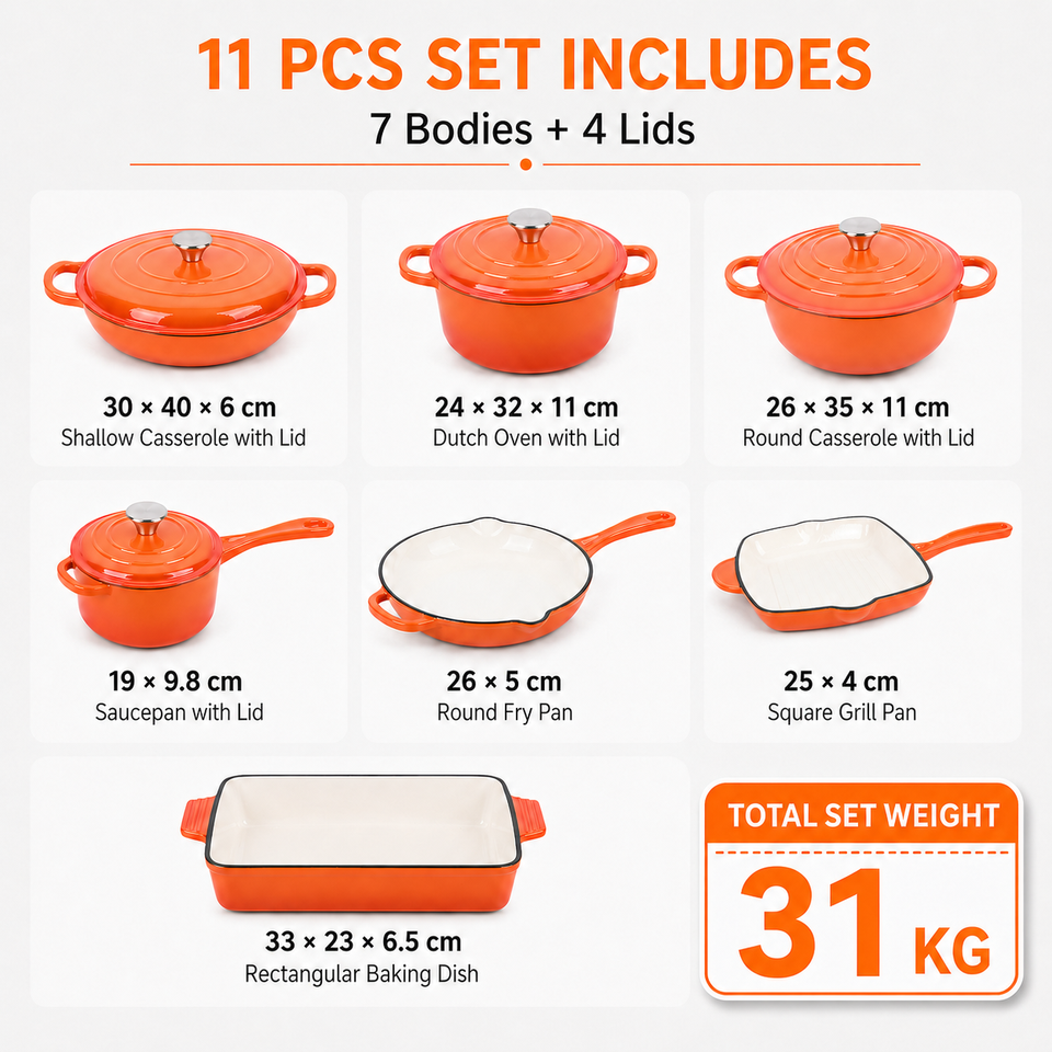 7pcs cast iron enamel cookware set