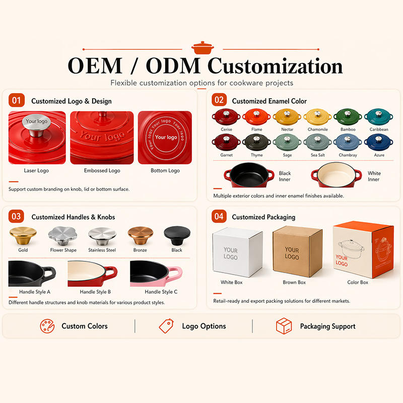 Juego de horno holandés (Dutch oven) de hierro fundido antiadherente de alta calidad, esmaltado ecológico, menaje de cocina para el hogar; ollas cerámicas al por mayor