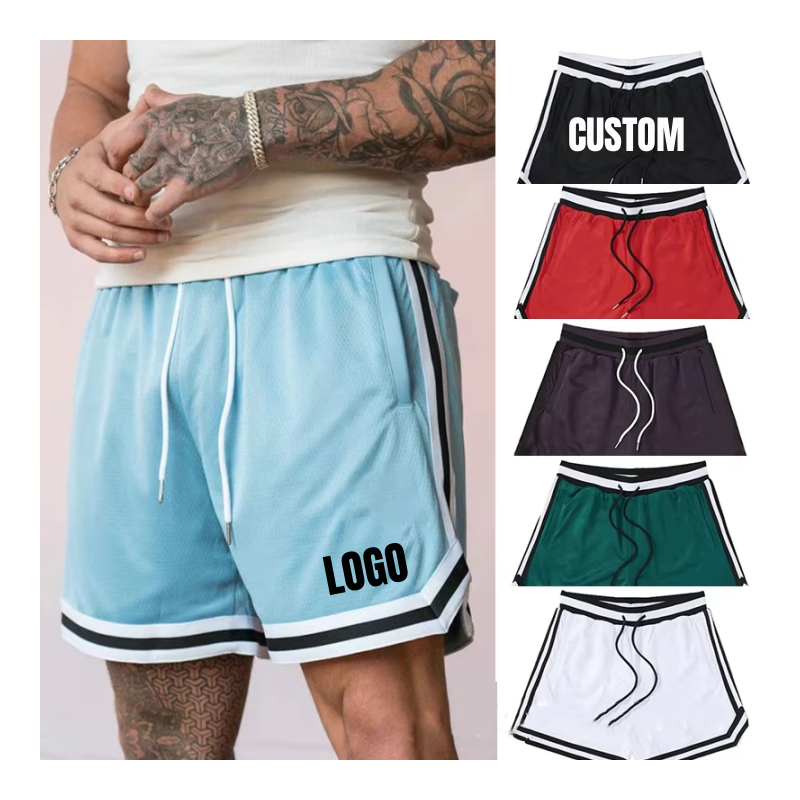 Pantalones cortos de gimnasio de verano informales de alta calidad, malla de poliéster, bordado personalizado transpirable, pantalones cortos de baloncesto para hombre, envío DDP