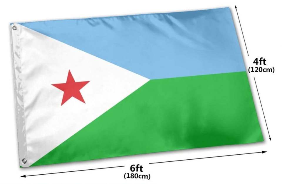 Bandera de Djibouti de Alta Calidad y Económica, 100% Poliéster, 3x5 pies, Personalizada con el Cuerno de África