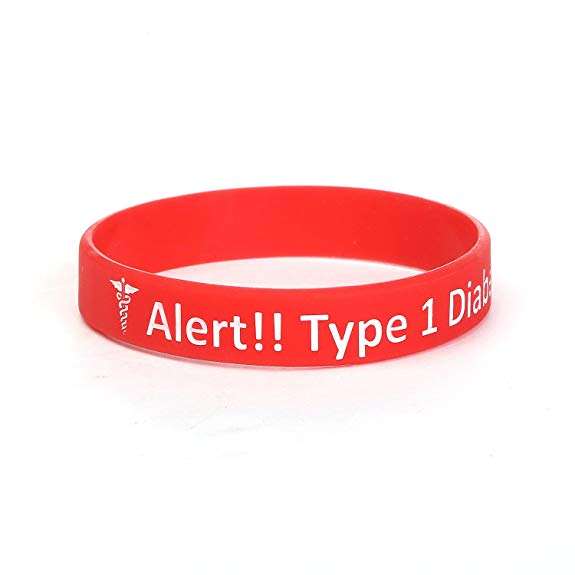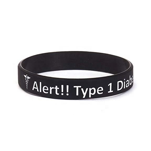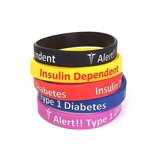 Pulseras de Identificación Médica de Silicona Clásicas para Diabetes Tipo 1, Paquete de 5, Personalizadas, de Alta Calidad y Económicas, para Hombres y Mujeres, Muestra Gratis, 7.5 Pulgadas