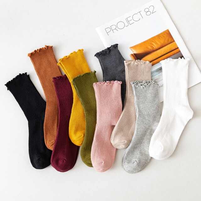 Calcetines de Mujer de Alta Calidad y Económicos con Diseño de Encaje, Color Sólido, Estilo Moderno, Calcetines de Tubo a la Moda
