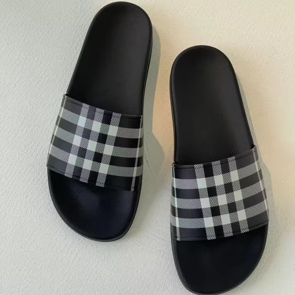 Pantuflas de diseño con patrón a cuadros de alta calidad para hombre y mujer, sandalias de playa para exteriores, zapatos casuales planos con plataforma para caminar.