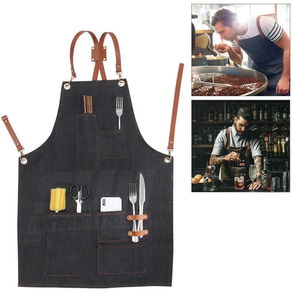 Delantales de Cocina de Algodón de Alta Calidad, Impermeables, Transpirables, Ecológicos, Duraderos y Ajustables, Delantales de Restaurante para Cocinar