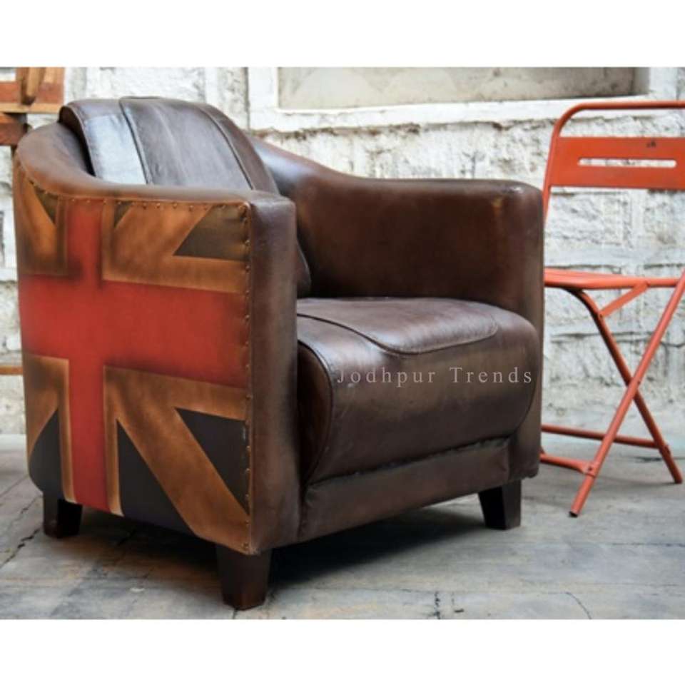 Sofá de cuero con serigrafía de un solo asiento Chesterfield de alta calidad para decoración del hogar y muebles de sala de estar