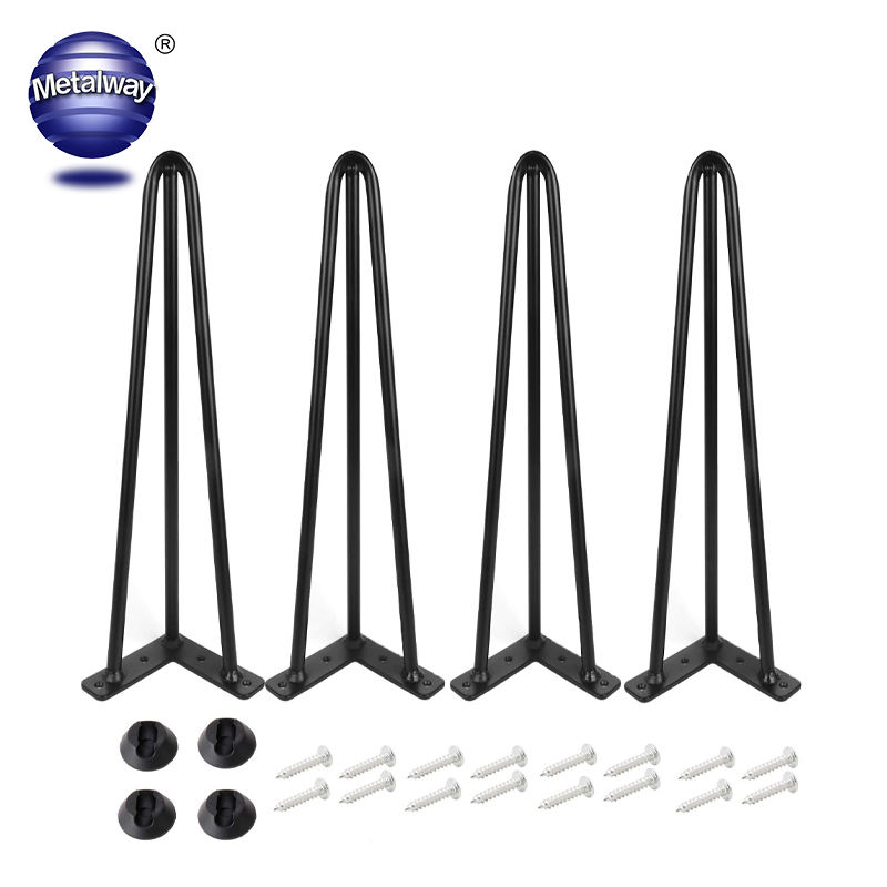 Patas de horquilla de mesa de hierro negro, 3 varillas, alta calidad, fábrica de China