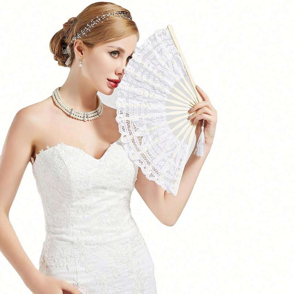 Abanicos Plegables de Plástico con Diseño de Dragón y Borlas, Bordado Chino de Alta Calidad, 27 cm de Largo, Recuerdo de Boda, Multicolor