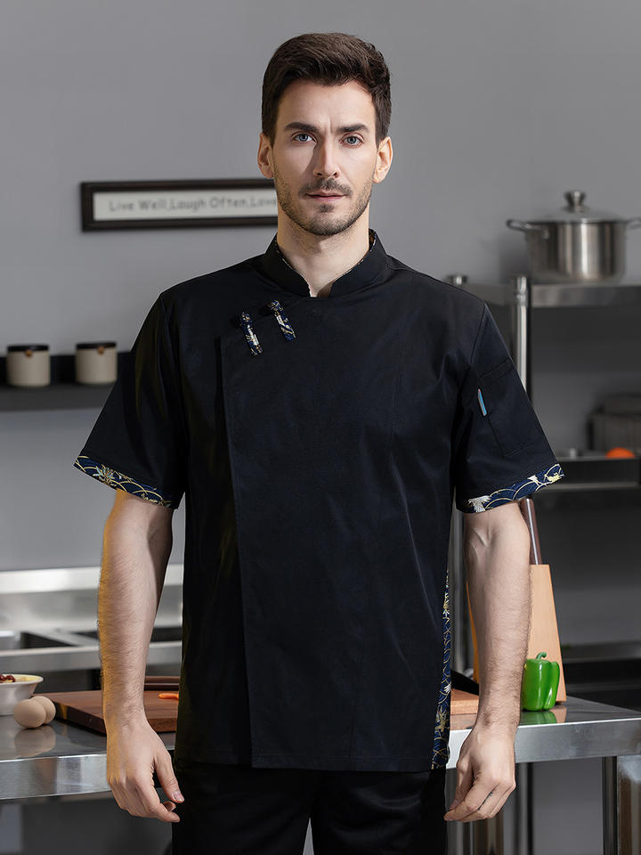 Hebilla de tela de estilo chino de alta calidad, manga corta, Hotel, Catering, restaurante especial, cocina, ropa de trabajo, uniforme de Chef