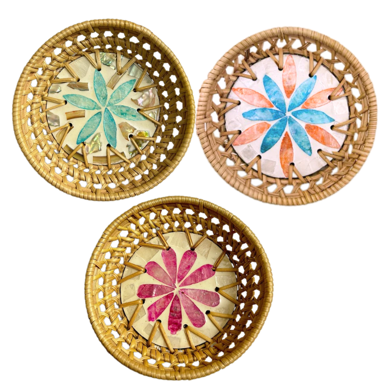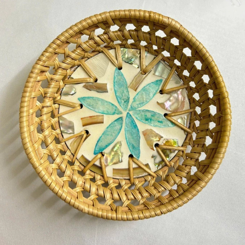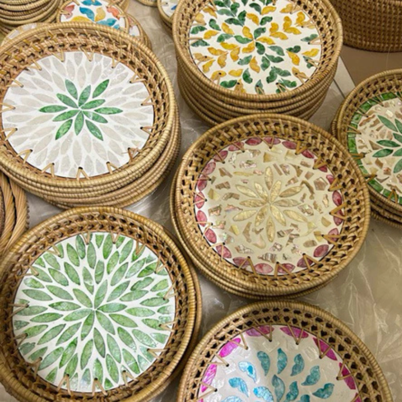 Bandeja de mimbre tejida a mano fácil de llevar para decoración del hogar de estilo floral clásico de alta calidad con nácar producida en masa en Vietnam