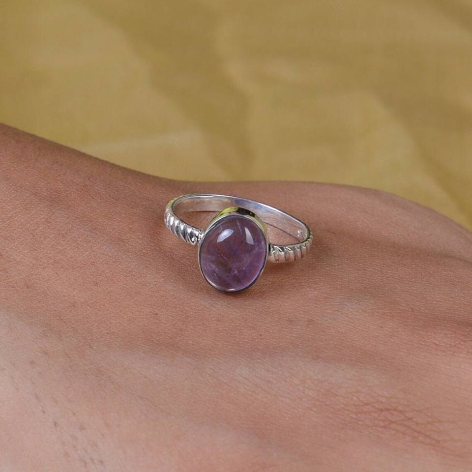Anillo martillado de Plata de Ley 925 de estilo clásico de alta calidad para mujer, bisel de cabujón ovalado de amatista púrpura suave de 8x10mm
