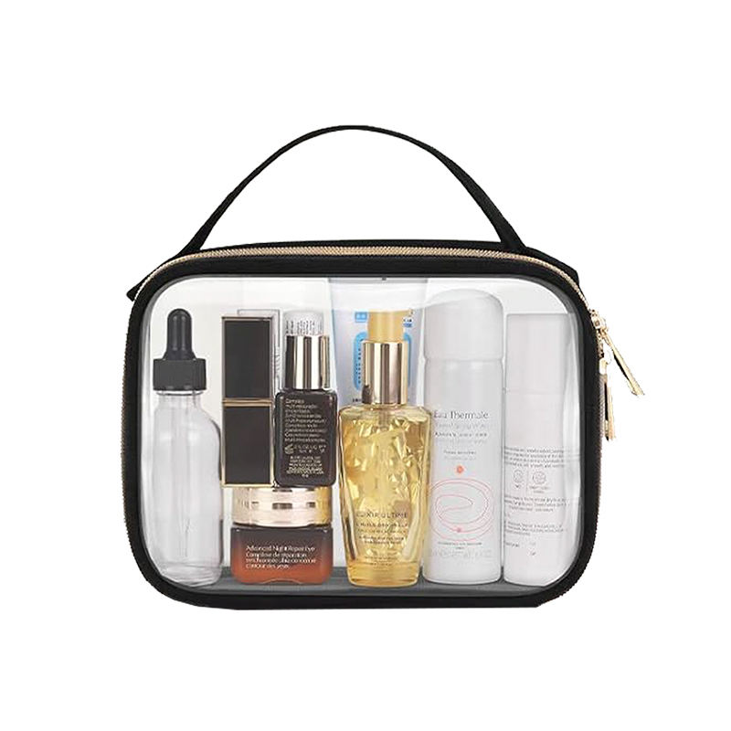 Poliéster transparente de alta calidad para neceser con patrón de hilo Bolsa de maquillaje ligera portátil con cierre de cremallera para Cosme