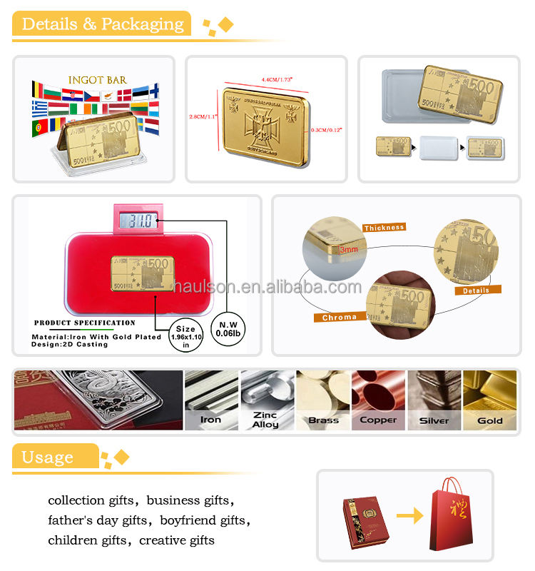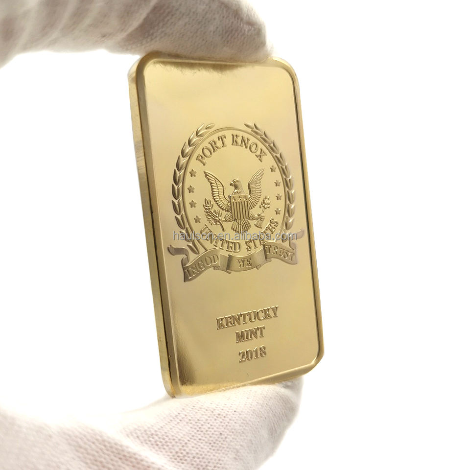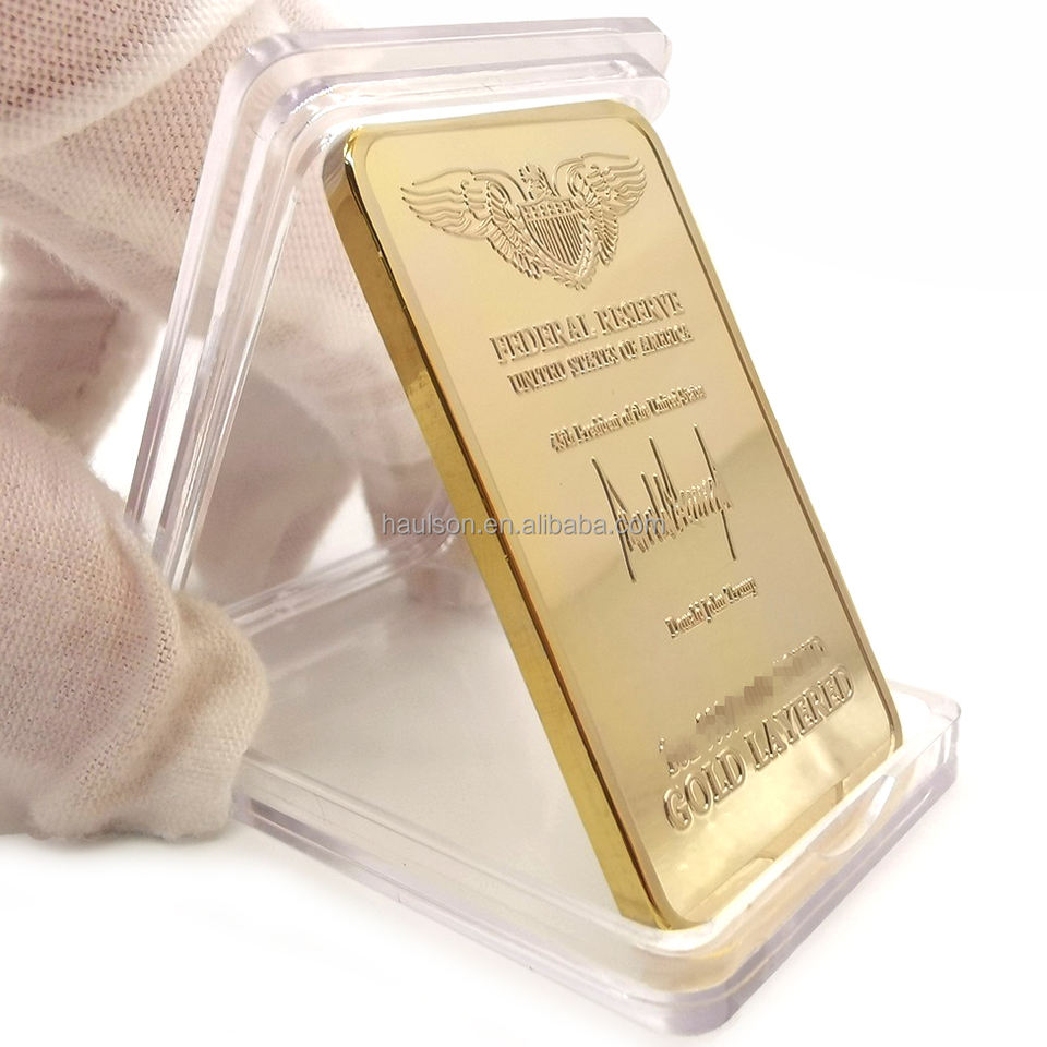 Lingote de metal de 1 oz 24K Chapado en capas dorado personalizado conmemorativo de alta calidad, copia de la Reserva Federal, lingotes de metal de recuerdo