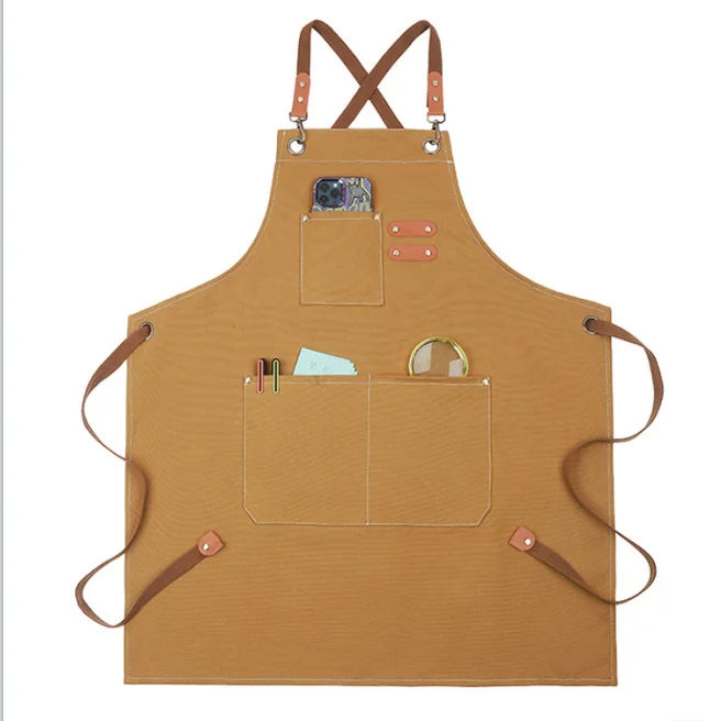 Delantal de panadero de algodón de alta calidad logotipo personalizado cocina Chef Barista delantal de lona ajustable barbacoa jardín bordado delantales Delantal