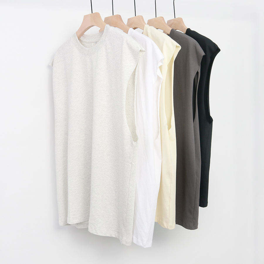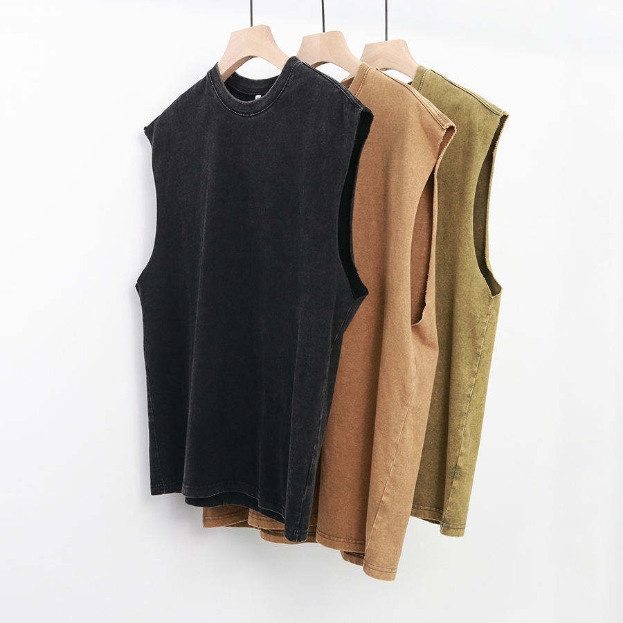 Camiseta sin mangas de algodón acanalado de alta calidad para hombre, corte ajustado, para gimnasio, fitness, running, deportes, sin mangas, con borde sin rematar, estilo boxy, corta