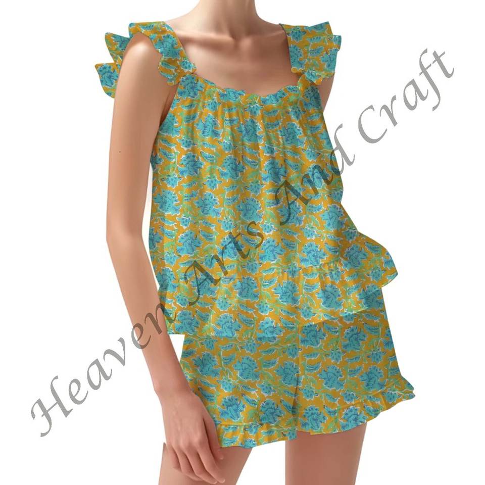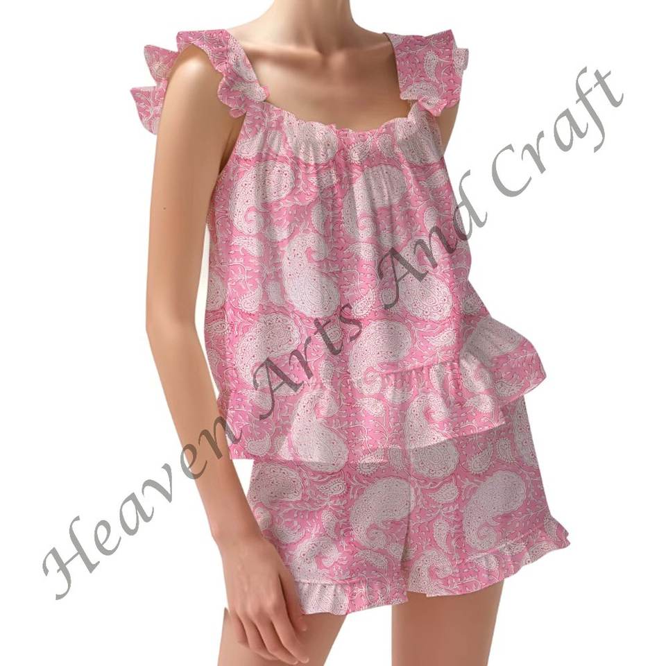 Nombre del producto:100% Algodón Impreso Ruffle Pijama Set