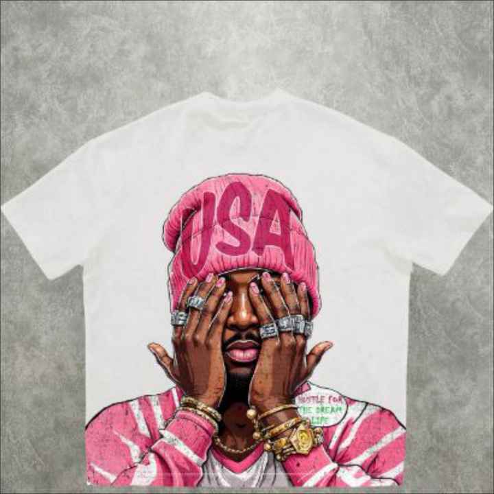 Camiseta de Algodón de Alta Calidad con Estampado Gráfico de Diamantes de Imitación, Lavado Ácido, Hombros Caídos, Estilo Urbano, Informal y a la Moda