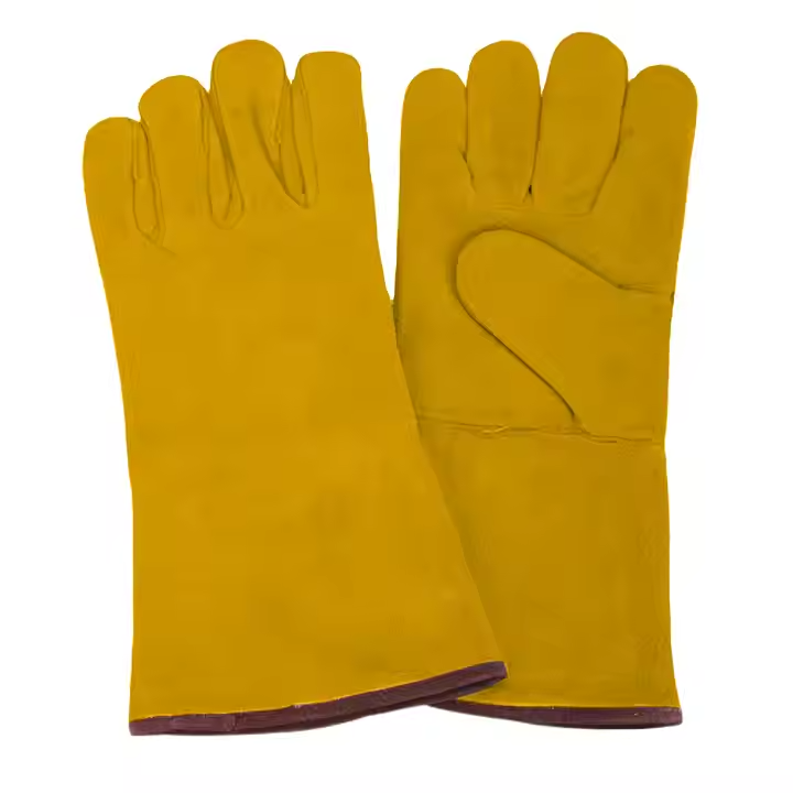 Guantes de seguridad de cuero de vaca de alta calidad, resistentes al calor, protección de manos para trabajo y barbacoa, guantes de soldadura