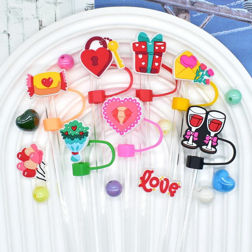 Cubiertas de Silicona para Pajitas de Alta Calidad, Creativas, Nuevas, Serie Día de San Valentín, Decoración de Pajitas con Dibujos Animados