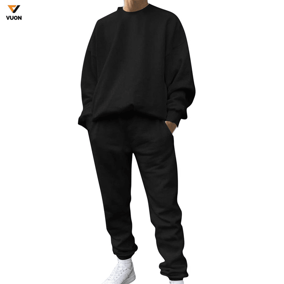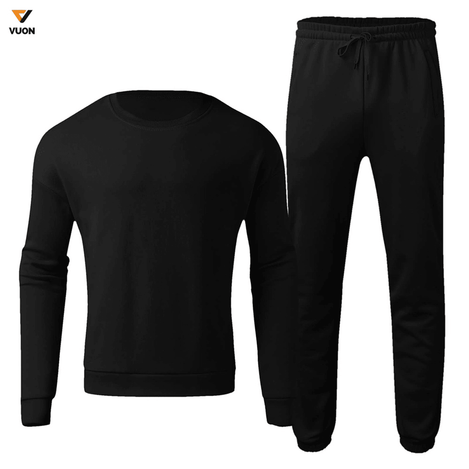 Alta calidad crew Masajeadores de cuello hombres algodón personalizado sudadera y pantalón conjunto