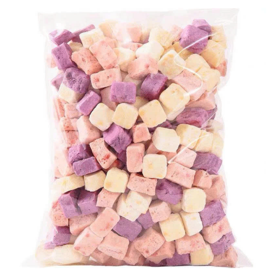 Cubos de Yogur Liofilizado Crujiente de Alta Calidad con Fresa, Arándano y Mango, Yogur Liofilizado a Granel