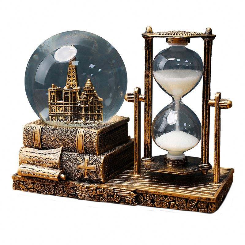 Caja de Música con Bola de Cristal de Alta Calidad, Reloj de Arena Retro con Forma de Torre de Libros a Buen Precio, Adornos de Escritorio para Regalo de Graduación para Estudiantes