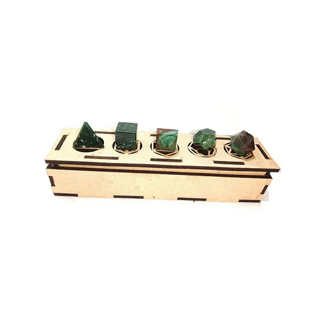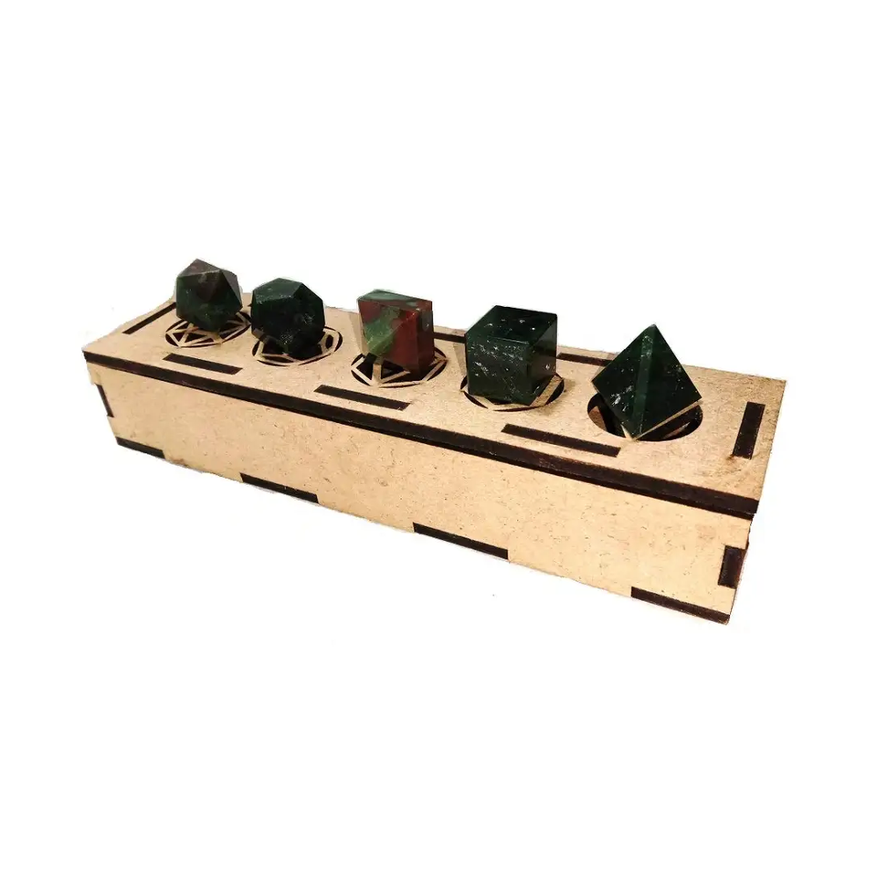 Juego de geometría de cristal de alta calidad, piedra de sangre, jaspe, juego de caja de madera geométrica de cristal, sólidos platónicos, juego de geometría de piedra sagrada