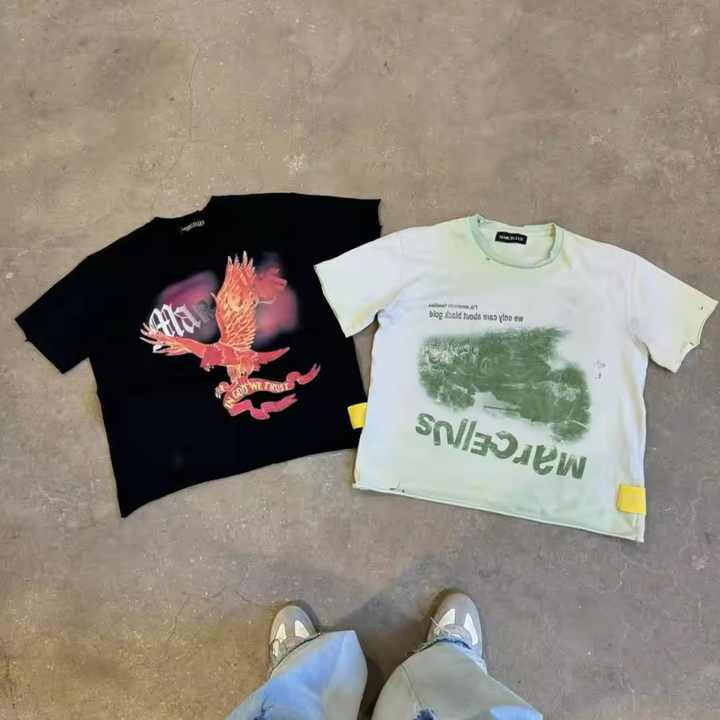 Camiseta de Hombre de Alta Calidad, 100% Algodón, Tejido de Punto, Estilo Oversize, Lavado Ácido Decolorado al Sol, 250 GSM, Impresión Digital, Aspecto Desgastado