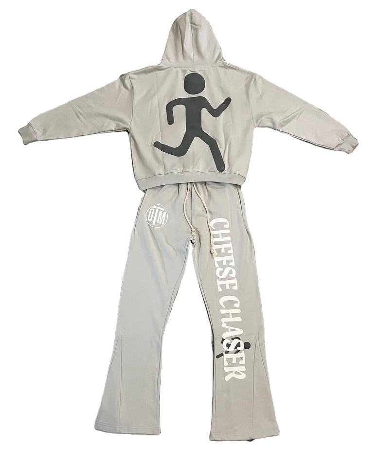 Alta calidad personalizado 100% algodón hombres Sun Faded Screen Puff estampado acampanado pantalones de chándal con cremallera completa Sudadera con capucha chándal de talla grande conjunto hombres