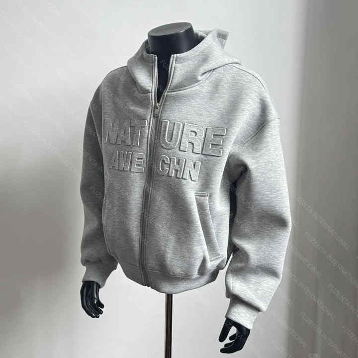 Sudaderas con Capucha y Cremallera con Logotipo 3D en Relieve Personalizado de Alta Calidad para Ropa Urbana Masculina, Bolsillo Tipo Canguro, Algodón Suave y Transpirable
