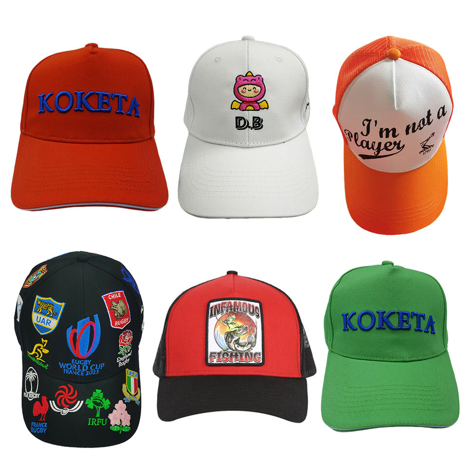 Alta calidad personalizado 5 paneles blanco rojo promocional NFL sombreros para hombre camionero correr sol sombrero malla deportes gorras de béisbol para hombre