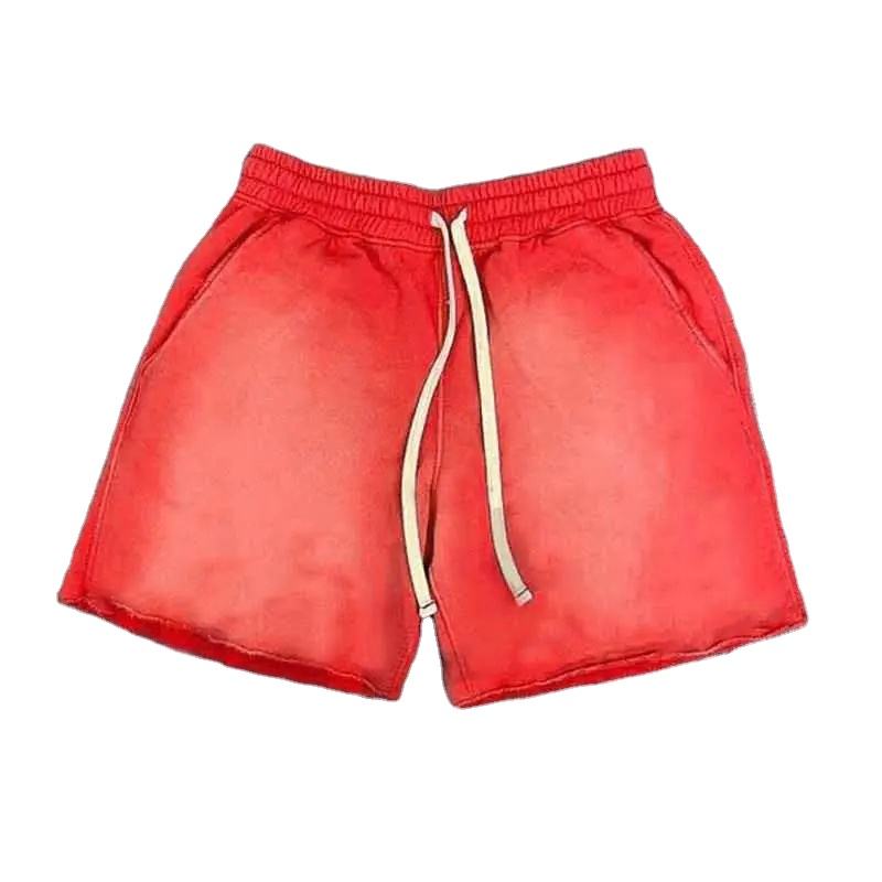 Pantalones cortos vintage de algodón lavados con ácido personalizados de alta calidad para hombre, pantalones cortos lavados con ácido rosa