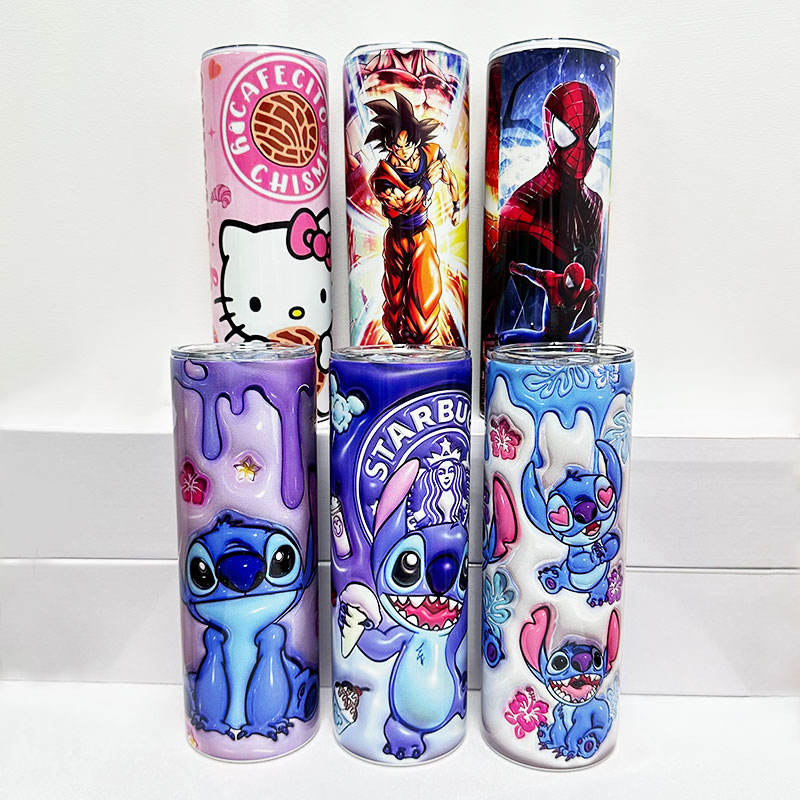 Vaso Térmico Sublimable de Acero Inoxidable 304 de Alta Calidad, Personalizado con Diseño Anime 3D, de 20oz, con Borde Plano, Tapa y Popote