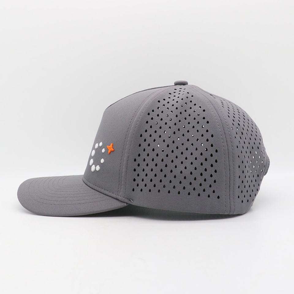 Gorra Deportiva de Béisbol Personalizada de Alta Calidad al por Mayor, Gorra Snapback de 5 Paneles con Bordado y Orificios Cortados con Láser, Tela Impermeable