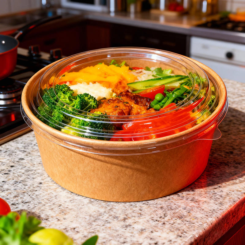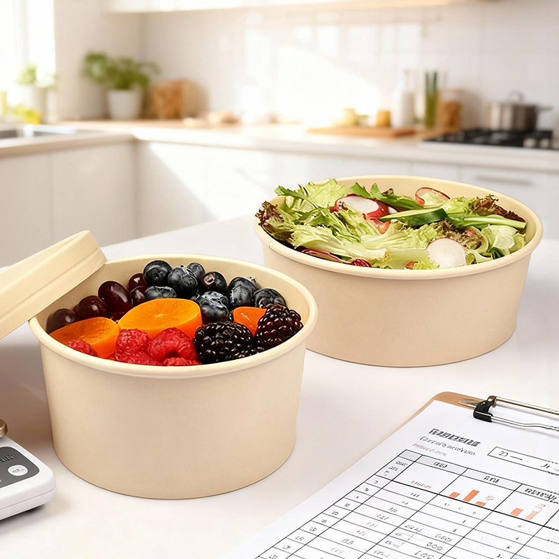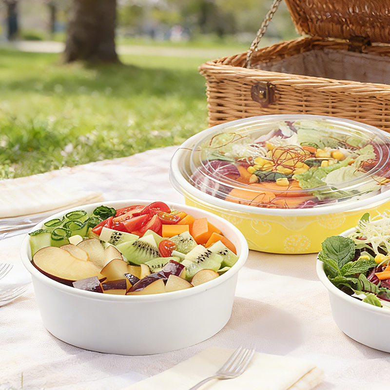 Tazón de ensalada portátil de papel de bambú blanco biodegradable personalizado de alta calidad para envasado de alimentos para llevar