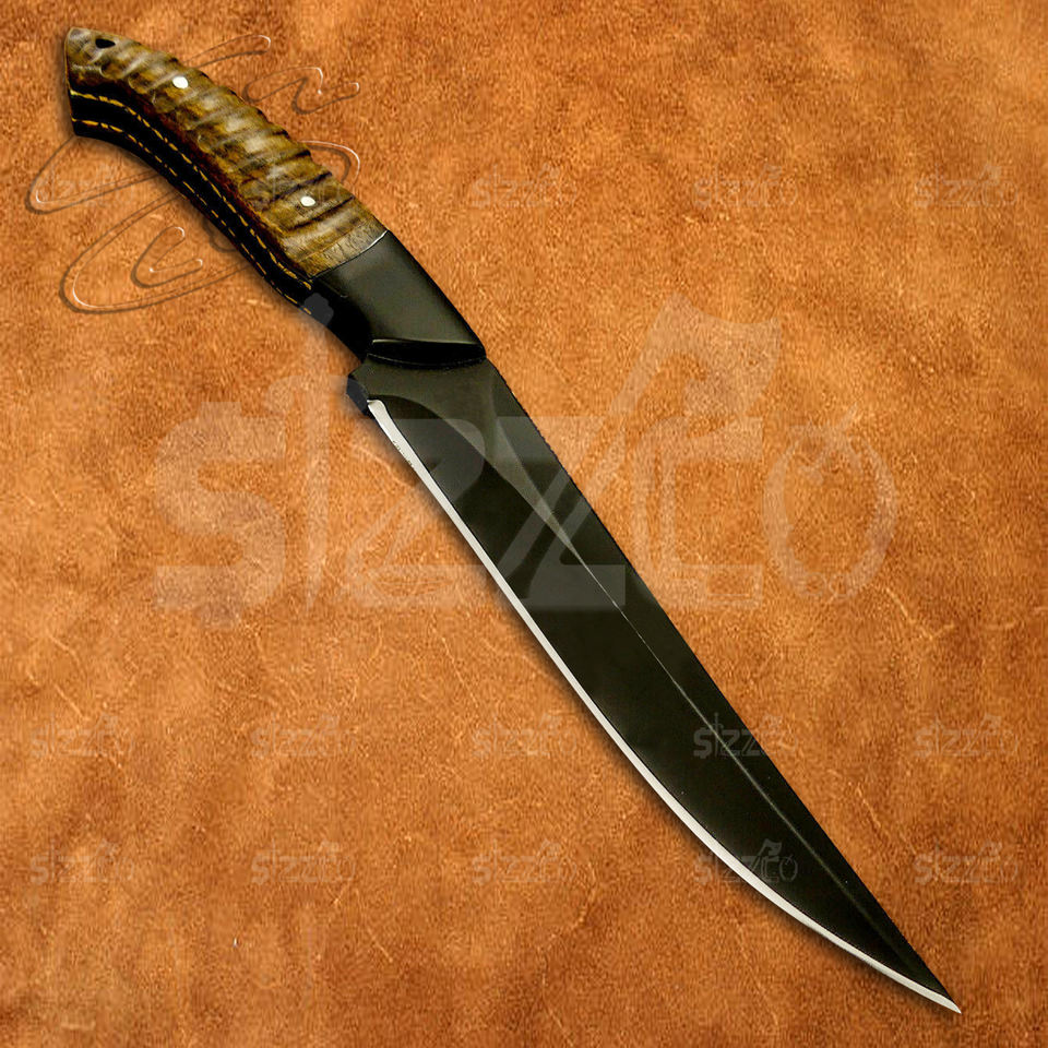 Cuchillo De Filete de cocina de acero D2 con recubrimiento de polvo negro personalizado de alta calidad, Burl mango de madera, Funda de cuero, corte suave