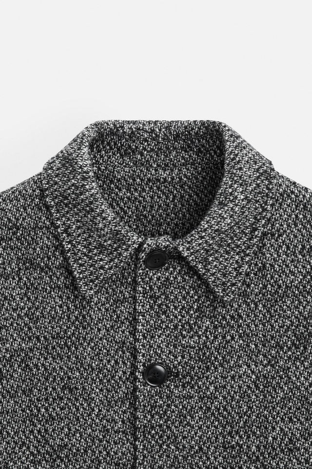 Chaqueta de Invierno de Alta Calidad con Textura en Contraste y Recubrimiento Personalizado para Hombre, Corte Holgado, Cuello Redondo Acanalado, Mangas Largas, Bolsillos con Ribete, Cierre de Botones