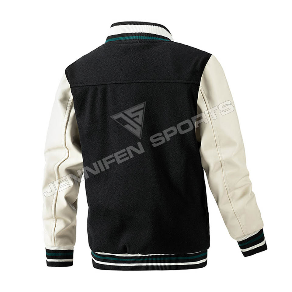 Chaqueta universitaria con bordado Chenllie personalizado de alta calidad, lana de concha, Mangas de cuero, cierre de botón, forro interior acolchado