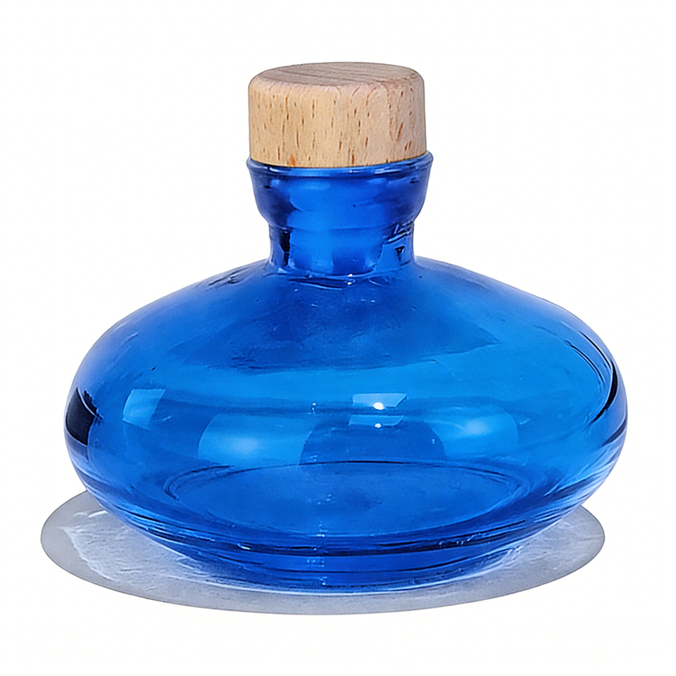Botella Difusora de Vidrio Azul de Alta Calidad con Gotero de Corcho, Diseño Moderno y Lujoso para Sala de Estar, Flor Decorativa