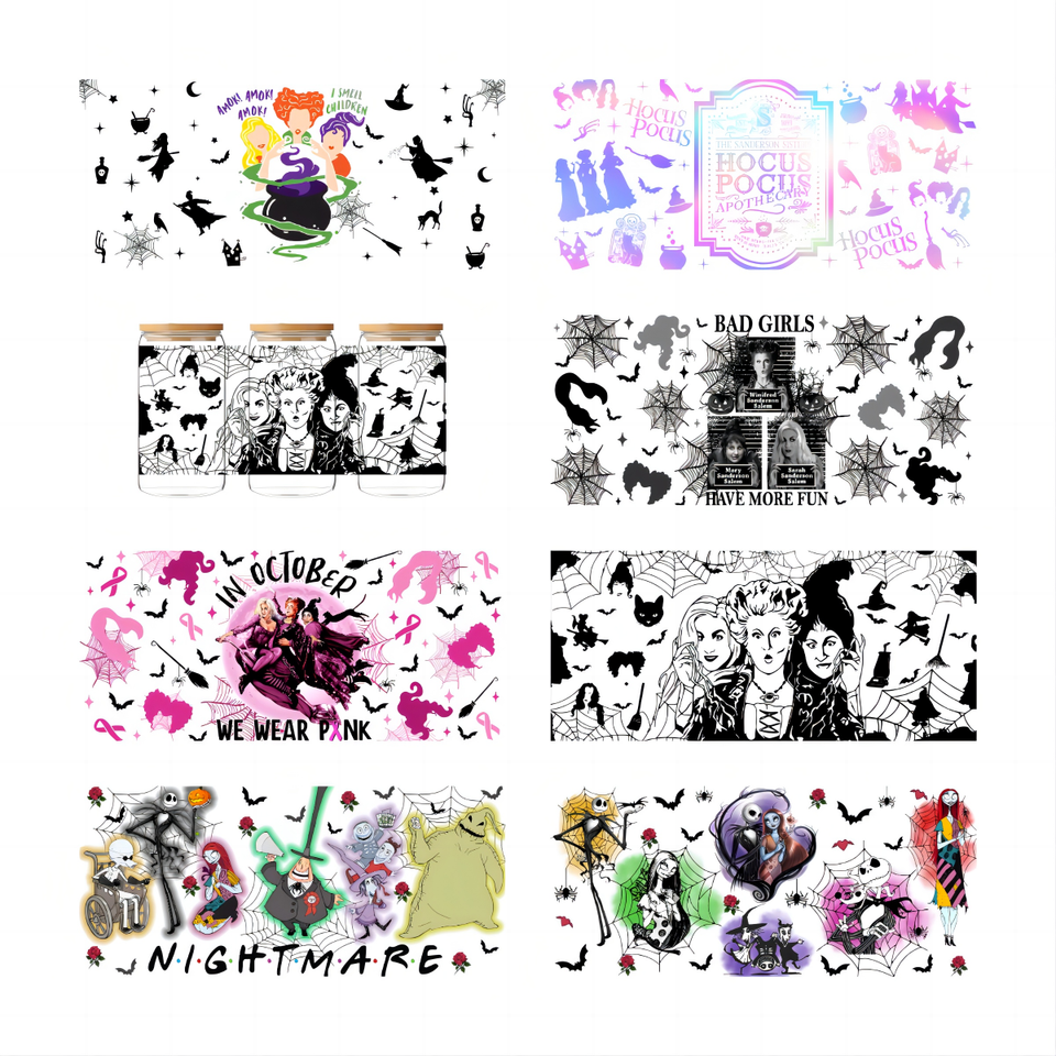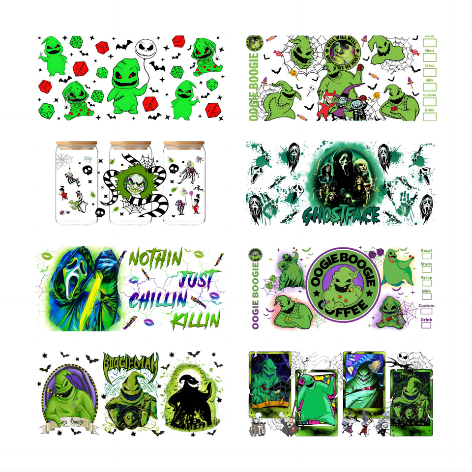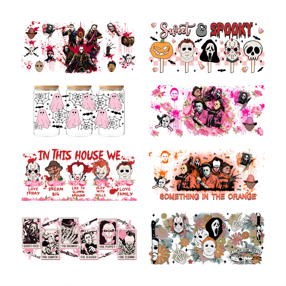 Juego de 5 Vasos de Café Aislados de Vidrio Tumbler de Alta Calidad con Color Personalizado, Botella de Agua con Diseño de Película de Terror, Impresión UV, Película PET Lavable