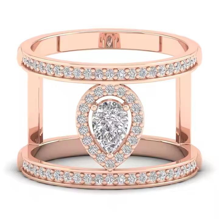 Anillo de compromiso de oro de 14 quilates de diseño personalizado de alta calidad, joyería fina de diamante cultivado en laboratorio de corte brillante para mujer