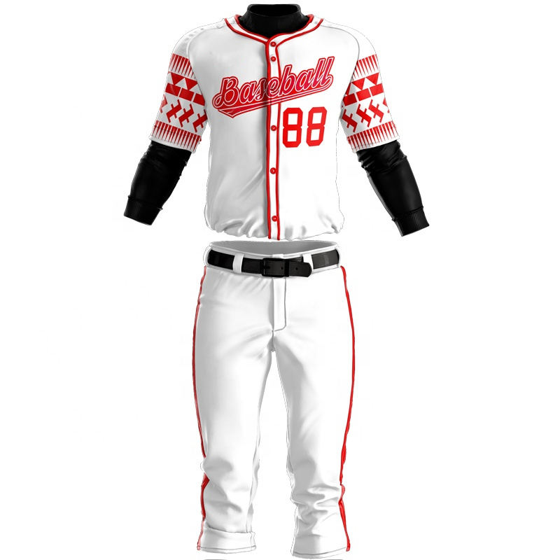 Uniformes de béisbol de diseño personalizado de alta calidad, antibacteriano, 100% de poliéster, los últimos conjuntos de ropa deportiva en blanco famosos, impresión personalizada