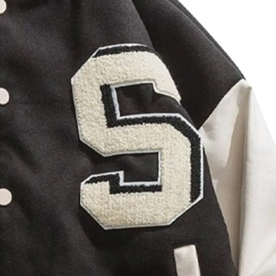 Chaqueta de béisbol universitaria de diseño personalizado de alta calidad para hombres, parches de manga de cuero, chaquetas universitarias con letras bordadas