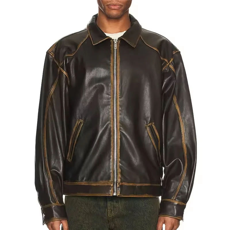 Chaqueta de Cuero para Hombre de Alta Calidad, Diseño Personalizado, Moda Urbana de Invierno, Impermeable, Transpirable, Tela de Lona, Nueva Llegada