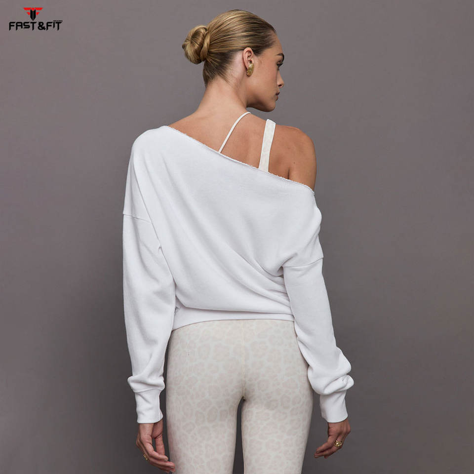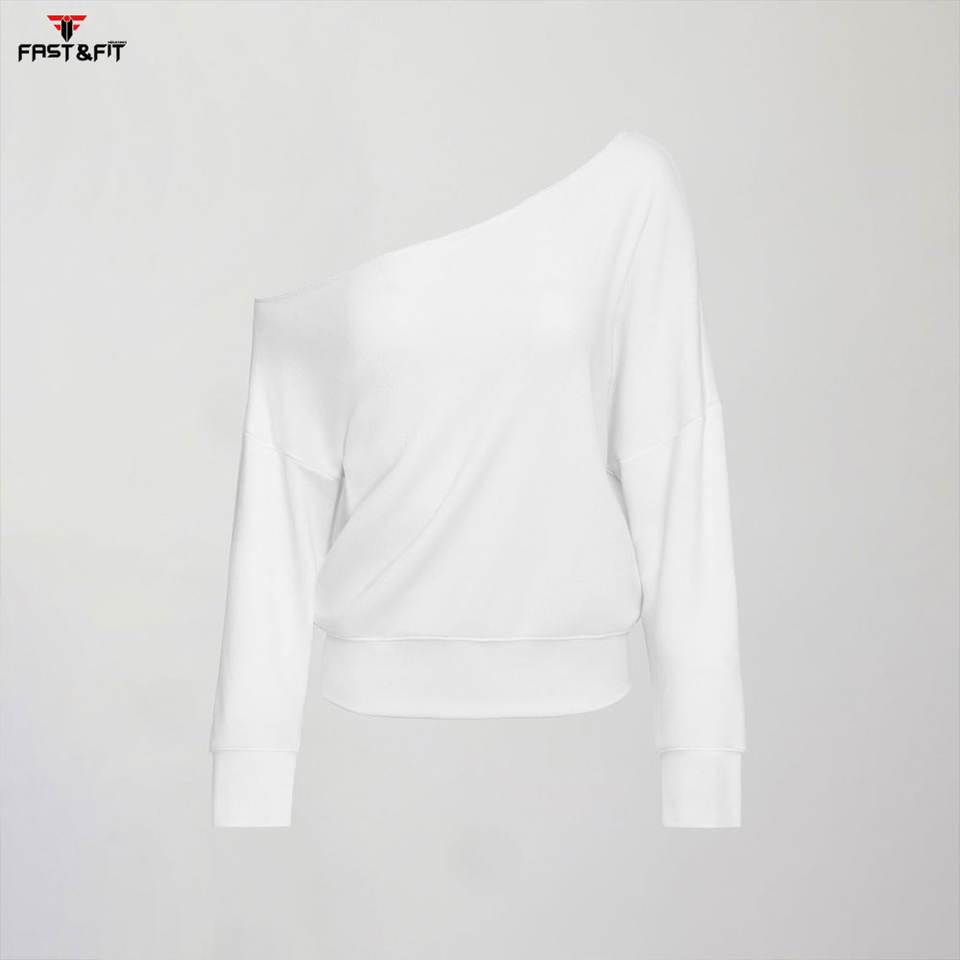 Sudadera de talla grande de manga larga con hombros descubiertos para mujer de diseño personalizado de alta calidad, transpirable antiarrugas con estampado de logotipo frontal