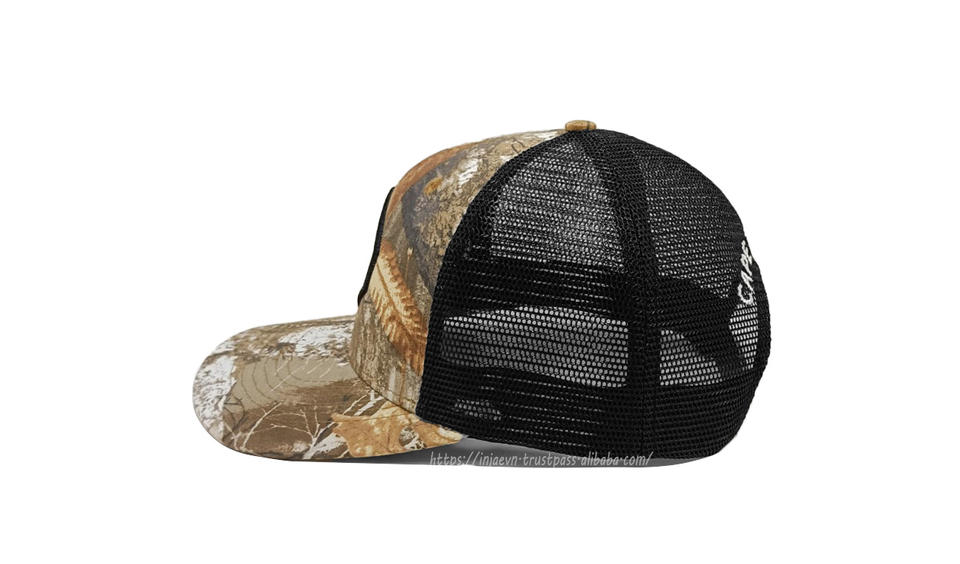 Sombreros de camionero de camuflaje 3D con logotipo bordado personalizado de alta calidad, parche tejido personalizado OEM, malla informal de moda para pesca deportiva