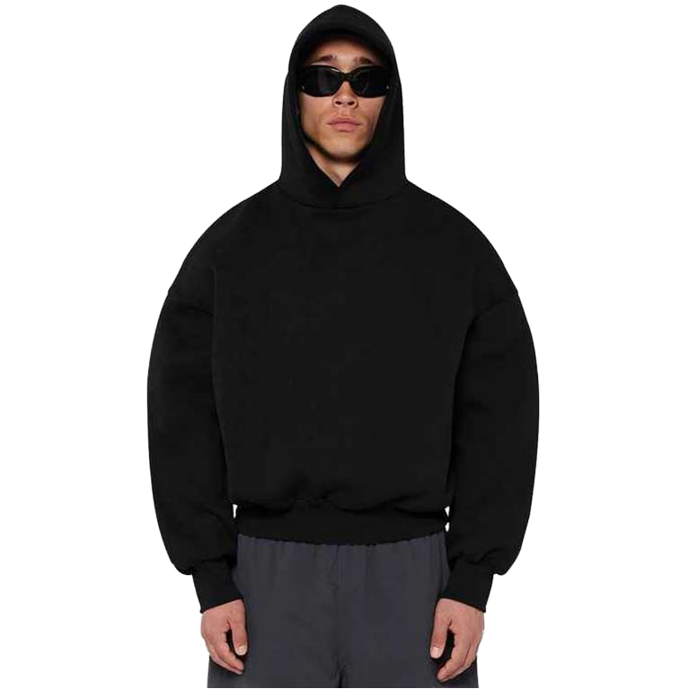 Sudadera con Capucha de Felpa Francesa de Alta Calidad, Personalizada, de 450 g/m², con Hombros Caídos, Negra, Estilo Cuadrado y Corto, para Otoño