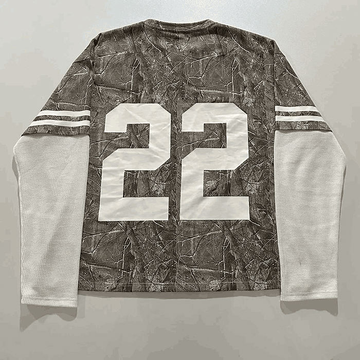 Camiseta de doble capa con gráficos personalizados de alta calidad, camiseta de manga larga de algodón de gran tamaño Y2K de doble capa