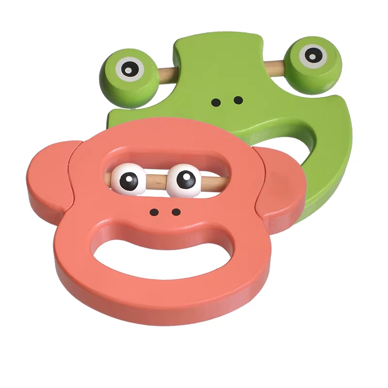 Campana de mano personalizada de alta calidad, juguete sensorial infantil, juguetes de instrumentos ecológicos, sonajero estilo mono, campana de juguete para sacudir la mano del bebé