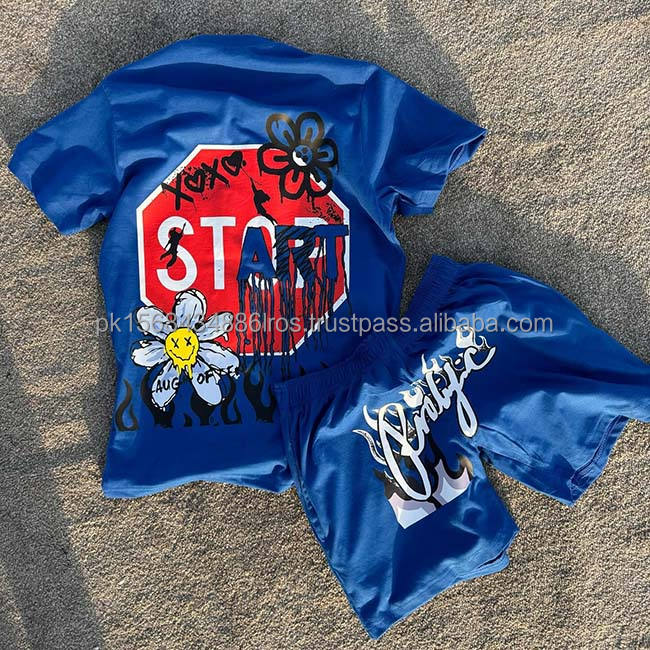 Conjunto de Primavera para Hombre de Alta Calidad, Personalizado con Impresión por Transferencia de Calor, Estilo Urbano Informal, Transpirable, de Secado Rápido, 100% Algodón Orgánico, Talla Grande